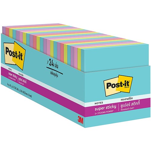 Post-it 654-24SSMIA-CP Super Sticky Notes 76x76mm Supernova Neons Cabinet Pack of 24