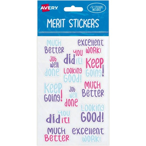 Avery Merit Stickers 13 Mixed Designs Assorted Colours 52 Stickers
