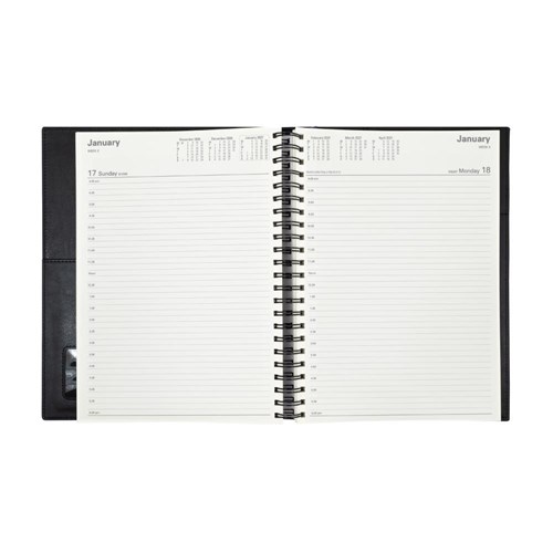 • Ideal for those 'on the move' with its double wiro binding and heavily grained metallic and matt PU cover.