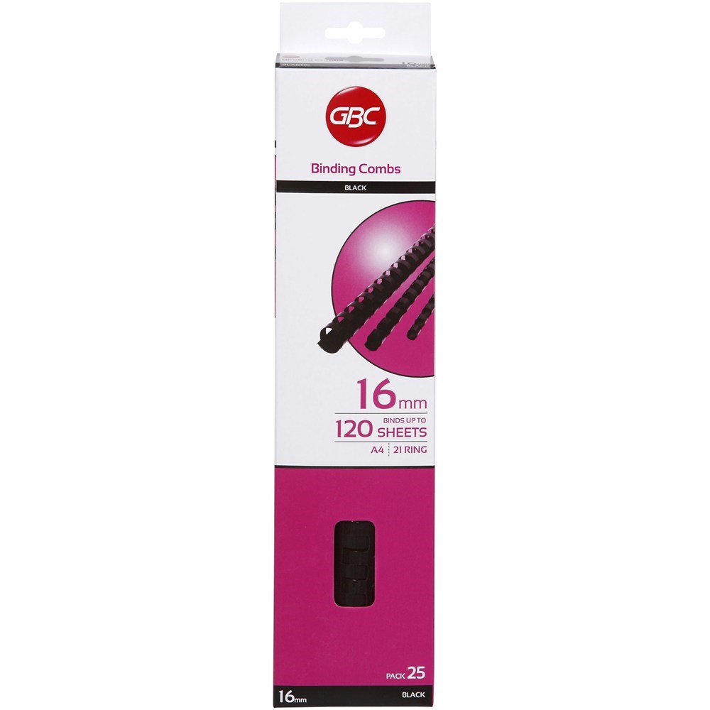 GBC Plastic Binding Comb 16mm 21 Loop 120 Sheets Capacity Black Pack Of 25