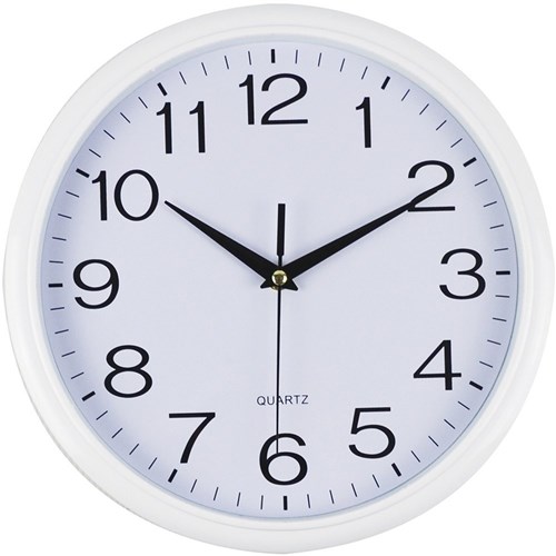 Italplast Wall Clock 30cm Round With Large Numbers White Frame White Face