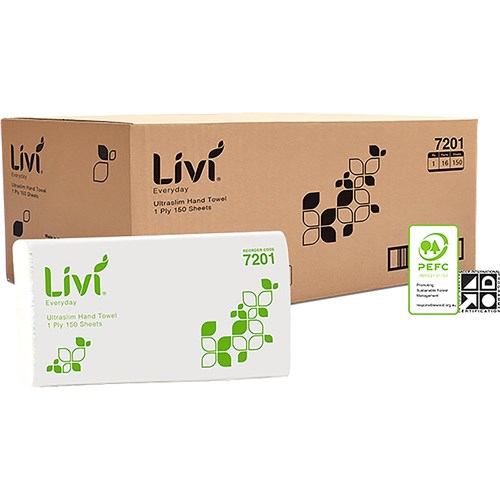 Livi Everyday Hand Towel Ultraslim 1 Ply 150 Sheets Box Of 16