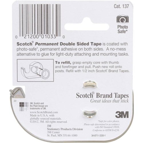 Scotch 137 Double Sided Tape 12.7mmx11.4m & Dispenser BOX8