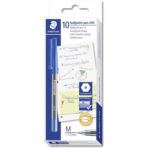 Staedtler 430 Stick Ballpoint Pen Medium 1mm Blue BOX10