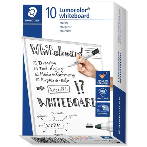 Staedtler 351 Lumocolor Whiteboard Marker Bullet 2mm Assorted Colours Box Of 10